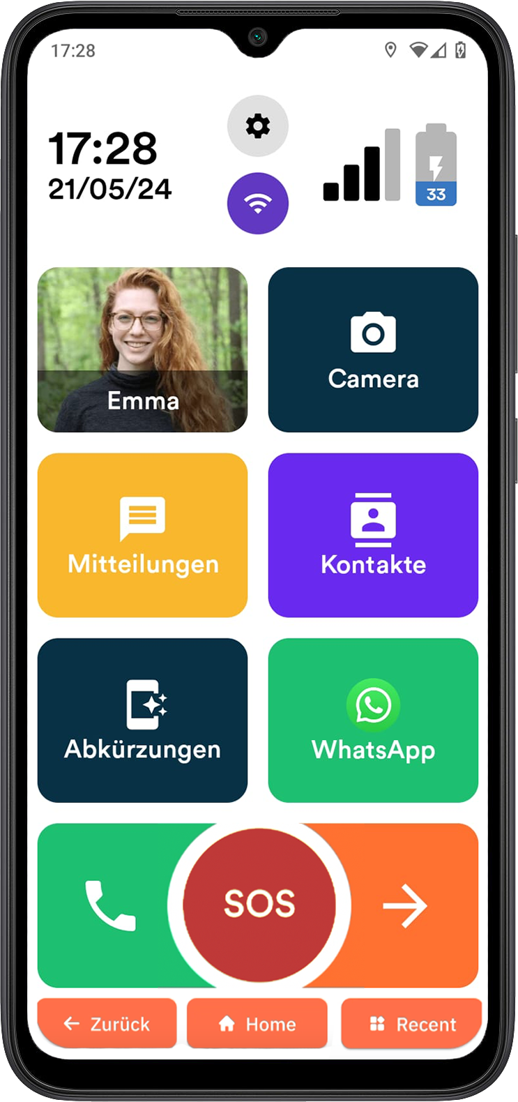 "Meine Frau hat Demenz im Fruehstadium. Senifone in Kombination mit dieser App sorgt dafuer, dass sie ihre Unabhaengigkeit behaelt und ich meine Ruhe. Wunderschoen gestaltet."