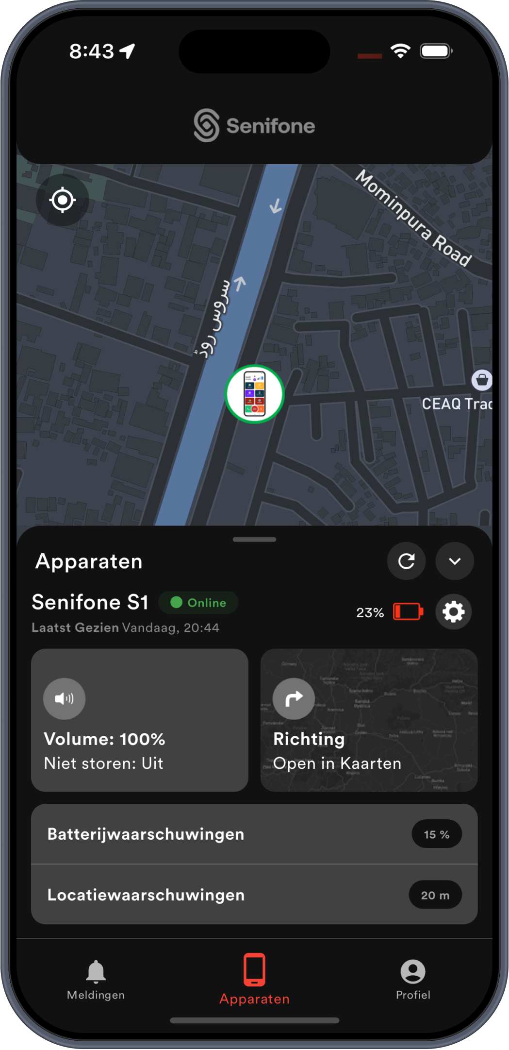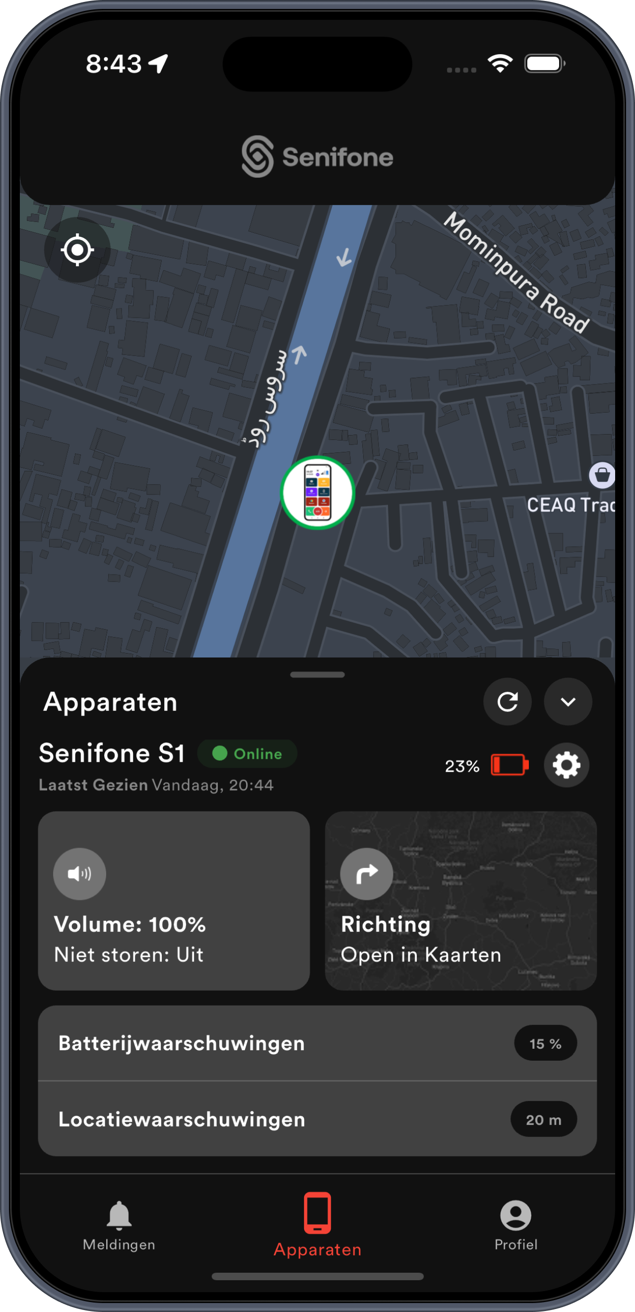 Koppeln Sie die Companion App mit Senifone und erhalten Sie Echtzeit-Tracking, Benachrichtigungen und Safe-Zone-Hinweise.